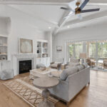- Great room and kitchen feature an 11-foot coffered ceiling with built-ins flanking the fireplace