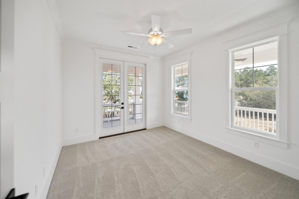 - Primary bedroom features a tray ceiling and french doors leading out to the rear covered porch
