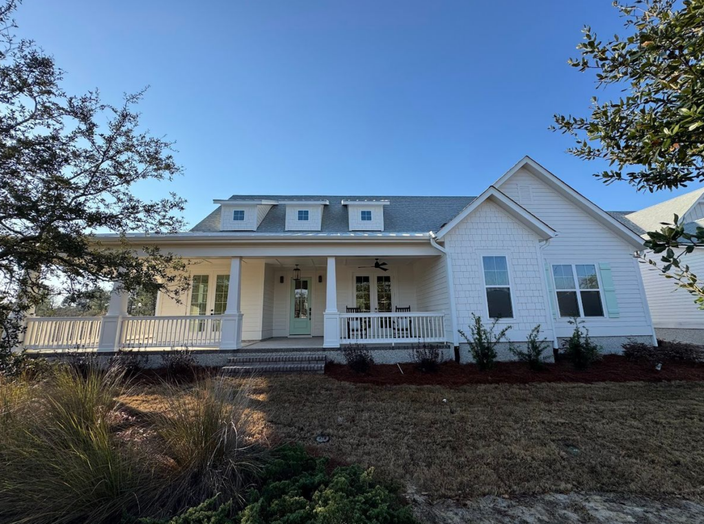 - Coastal cottage exterior with rear entry garage